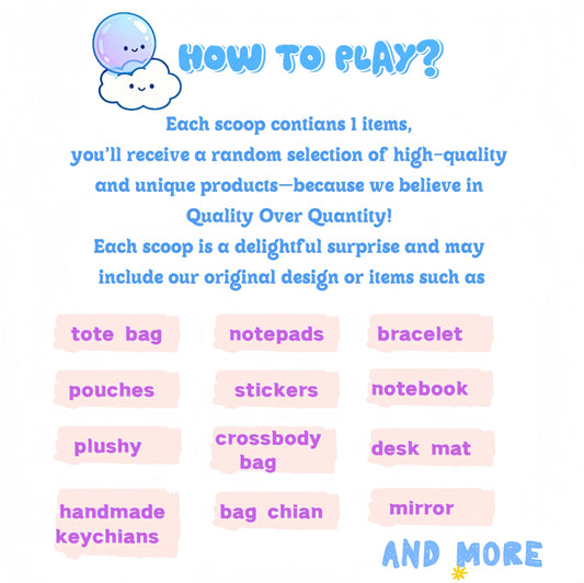 - Choose how many scoops you'd like—each contains one high-quality, charming, and unique item.
